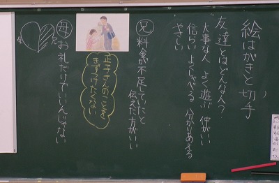 人権週間の取組の一環として、4年生の道徳では、「絵はがきと切手」の資料を通して、人権について考えを深めました。