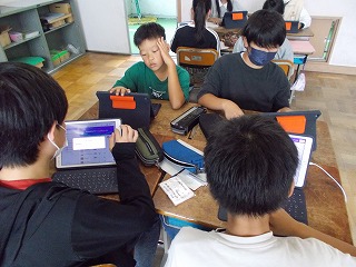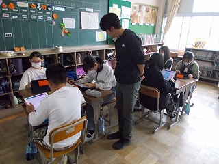 4時限目の6年生は、総合的な学習の時間で、「〇〇の歴史」と題して、さまざまな「人・こと・もの」の中から、グループごとに何かしらのテーマを決め、その歴史について、インターネットなどから、自分たちのテーマに関係する資料を探す活動をしました。テーマとしては、歴史上の有名人だったり、食べ物に関することだったり、道具に関することだったりとバラエティーに富んでいます。社会科の学習で学んだことなどを生かしながら、必要な資料を調べていき、興味深いレポートができるといいですね。