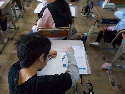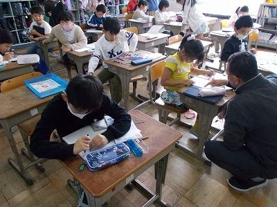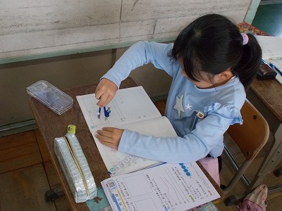 3年生は、算数科「円と球」の単元のおさらいに取り組みました。コンパスを使って円をかく問題では、スムーズにかいている子がいる一方で、まだ少し苦労しながらかいている子もいたようです。
