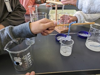 5年松組の理科の授業の様子です。「物のとけ方」の学習です。