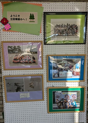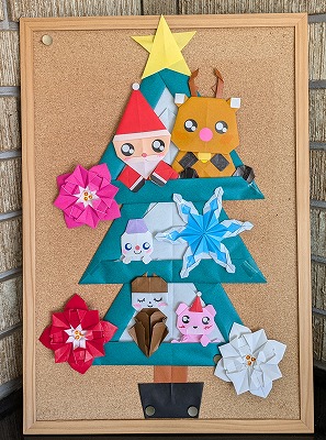 来賓玄関には、ポインセチアやサンタクロース、クリスマスツリーの飾りがあります。用務員さんが毎月、季節の飾りを作ってくださっています。