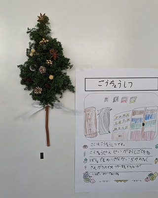 校長室の扉には、壁掛けのクリスマスツリーが飾ってあります。
