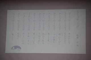 その一つとして、北原白秋さんの「ひとつのことば」という詩を紹介しました。