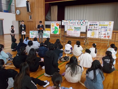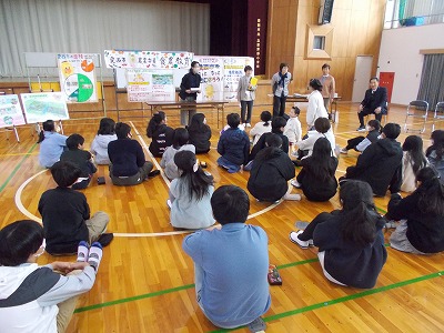 「訓練!訓練!運動場に避難してください」というアナウンスで、外で遊んでいる子は運動場の真ん中で集まり、校舎内にいる子は先生たちの指示にしたがって運動場に避難しました。静かに素早く行動できました。また、火災ということで、ハンカチや手で口元を押さえる子もいました。