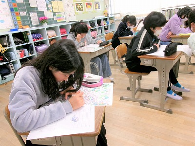 ほかの学年の作品を見る機会は、なかなかありません。今日の鑑賞会は有意義なものになりました。