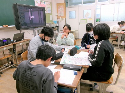 次に分散のグループに分かれて、行程を決めます。どの見学地に行くのか、その見学地で何分とるのかなどを話し合って決めます。