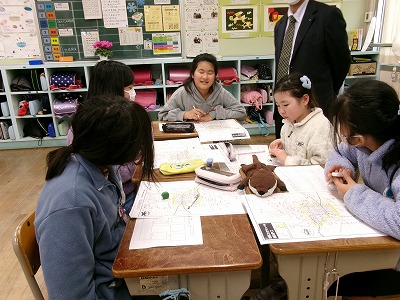 それぞれのクラスに掲示してある作品や階段や廊下にある作品、図工室や資料センターにある図工の立体作品などを見ました。どの作品も力作揃いで、