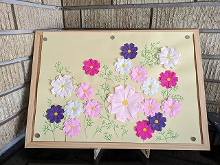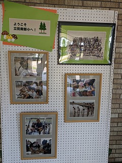 朝夕、随分涼しくなってきました。学校の来賓玄関には、いつもその季節に合った飾りを作っていただいています。この時期はコスモスです。そして、玄関に入って正面には、立南小の児童の皆さんの写真が掲示されています。「ようこそ 立田南部小へ」という題字にも『きのこ』が載っており、すっかり『秋』です。皆さんは、どんな秋にしたいですか?