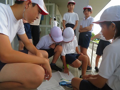 4~6年生の混合リレーの練習が初めて行われました。6年生のリーダーを中心に、走順を相談し、さっそく試しのリレーです。バトンパスの仕方、コーナートップ制の確認なども行い、どのチームも順調にゴールまでバトンをつなぐことができました。各チームの合計タイムは均等になっています。これから練習をしてバトンパスが上手になれば、ぐっと差をつけられます。教え合い、励まし合いながら、ゴールをめざせるといいですね!