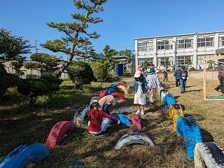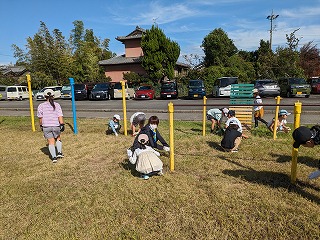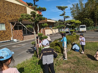 9月もかなり暑く、運動会のための草取りがなかなかはかどりませんでした。そこで、少しは涼しくなると思われる10月のこの時期に除草活動を行うことにしました。大人の方の手を借りて、子どもたちも一生懸命、草取りを行いました。運動場も随分、きれいになりました。