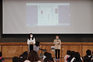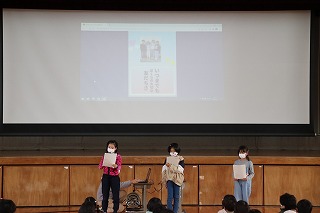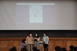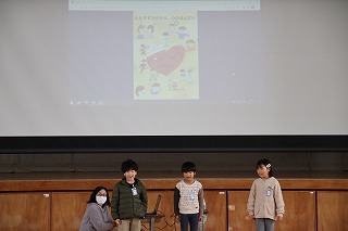 人権標語・ポスター発表会が立南タイムに行われました。人権週間の取組として、各クラスで人権に関する標語・ポスターを考え、その標語やポスターに込められた思いを発表しました。どの学年も自分やほかの人を大切にしようとする内容でした。