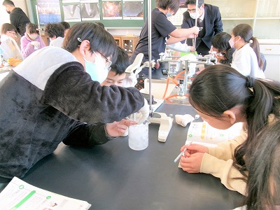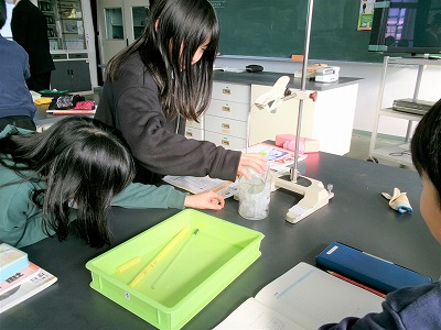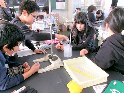 4年生の理科の実験の様子です。先週に引き続き、単元「水のすがたと温度」を学習しています。今日は、水を冷やしたときの温度の変わり方と水の様子を調べました。
