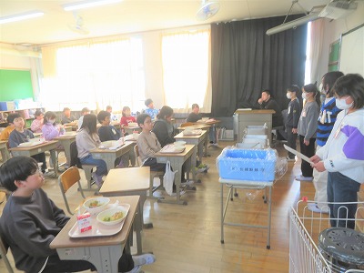 給食の時間に生徒指導の先生から、情報モラルについてのお話がありました。