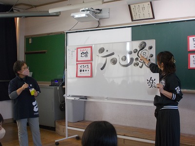 今日は、日本己書道場公認 上席師範の鬼頭敦子先生、道場師範の松永香織先生を講師としてお招きし、己書の出前授業をしていただきました。