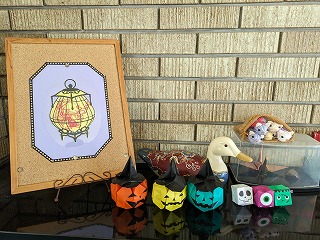 来賓玄関の靴箱の上に季節にあった飾りを用務員さんが作成してくださっています。切り絵や折り紙で作ったものなど、かなり手が込んだ作品ばかりです。今は、ハロウィンの飾りです。