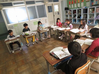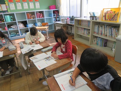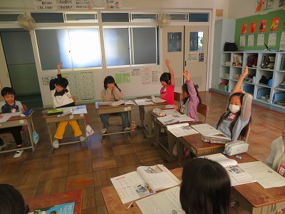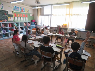 11月21日(木) 「パパに勉強を教えてもらったとき」「お母さんに何か買ってもらったとき」など、やはり、何かをしてもらったときに「ありがとう」を言うと話す2年生の子どもたちにとって、今日の道徳の『ありがとうはだれが言う?』というお話は、大変興味深いもののようでした。 お店の店員さんに「ありがとうございました」とお礼を伝えるおばあちゃんの言動を不思議がる主人公に、「店員さんたちのおかげで物を買うことができるのよ。お客さんも店員さんにお世話になっているんだもの。私もお礼が言いたいのよ。」というおばあちゃんの言葉が心に残り、バスを降りるときに、運転手さんに「ありがとうございました」とお礼を伝え、さわやかな気持ちを感じるというお話。 「バスを降りた主人公がさわやかな気持ちになったのはどうして?」との問いには、「思い切って『ありがとう』って言ったら、運転手さんも言い返してくれたからうれしかった」「運転手さんに気持ちが伝わったからさわやかな気持ちになった」「おばあちゃんに教えてもらった気持ちをぼくも伝えられたから」と様々に、感謝の気持ちをもったり、それを伝えたりすることのすばらしさ、大切さを感じているようでした。日頃から家族、友達、先生、地域の方々など、まわりの人々のお世話になって、元気に楽しく生活できているんですね。何一つ当たり前ではありません。これから、いろいろな「ありがとう」に気づいて、ぜひ、伝えていきましょう!
