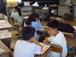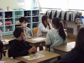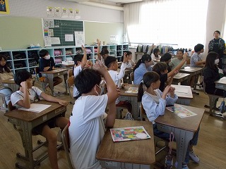 和田さんのお話を聞いての感想を近くの席の子たちと交換し、代表の人が発表しました。「自分の好きなことが、人の役に立っていることがすごい」という、まさに聞いた人がハッピーになる感想でした。