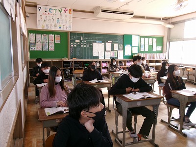2限の休み時間から3時間目にかけて、避難訓練を行いました。今日は、予告なしの訓練でした。地震が起こり、理科室から出火したという想定での避難訓練でした。