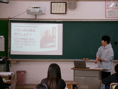 その後は、愛西市消防署の方に水消火器の使い方を教えていただきました。6年生が代表で実際に水消火器の体験を行いました。