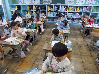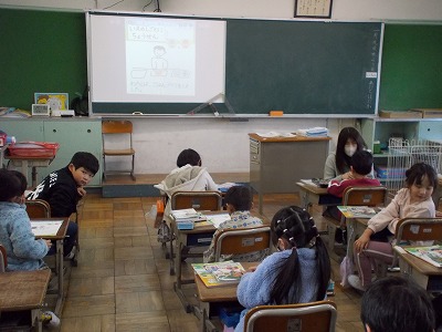 1年生は、冬休みの課題「いえのしごとにちょうせん」で取り組んだことをワークシートに絵と文でまとめました。冬休みのことを楽しそうに振り返りながら、ワークシートに書き込んでいました。挑戦した内容を見てみると、新聞を取りに行く、洗濯物をたたむ、お風呂の掃除など、いろいろとありました。1年生ながら、家庭でも活躍したことが分かり、とてもうれしく思いました。今回挑戦したことに、今後も普段から取り組んでいけるとなお素晴らしいですね。