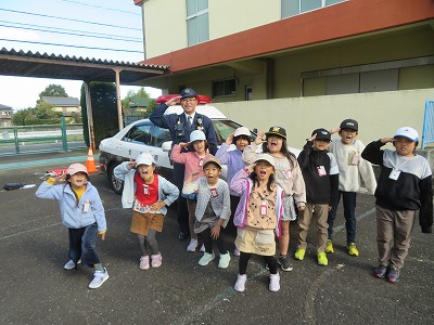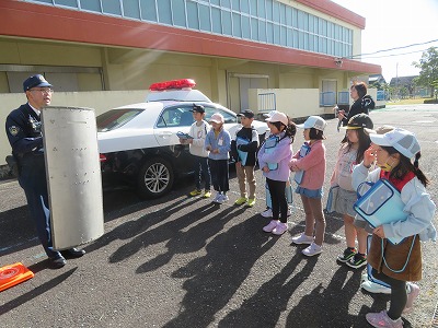 駐在さん、今日はありがとうございました!2年生のみなさん、こうして警察のみなさんに守っていただきながらの日々に感謝しながら、自分の身を自分でも守れるように、安全・防犯の意識を高めて生活していきましょうね!
