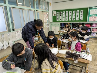 ペアになって、クイズに答えていました。英語では伝わらないことは、絵にして表現するのもOKです。どのペアもとても楽しそうに、クイズに答えていました。
