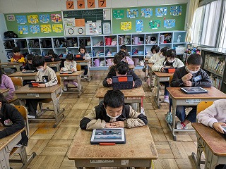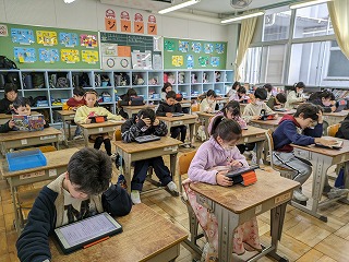 今日の立南タイムは、読書でした。2年松組の様子です。タブレット端末を使って、「Yomokka!!」で好きな本を読んでいる子が多かったです。