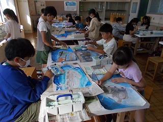 5年生は、「銀河鉄道の夜」を題材とした読書感想画に取り組んでいます。宮沢賢治の有名な物語ですが、折しも今、「紫金山・アトラス彗星」が日本各地で夜空に尾を引く姿が観察されており、宇宙に関心を向けるよい機会になっているかもしれませんね。