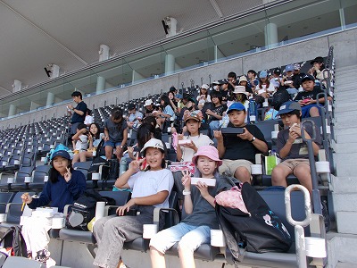 学習プログラムの後は、お弁当タイムです。実際にレースが行われるコースのスタンドで食べるお弁当は格別です。