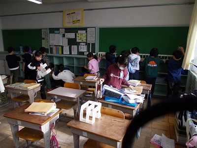 3年生は、冬休みを前に、ふだんの掃除では、なかなか手が回らなかったところを皆できれいにしました。今回は教室のロッカーとその上の部分です。各ロッカーの中の荷物やロッカーの上に並べて置いてある教科書やノート、ワークなどを一旦移動し、手分けをして拭き掃除をしました。皆で協力したので、あっという間にきれいになりました。終わったときに「きれいになって気持ちいい!」という声が聞かれました。家庭でも率先して掃除に取り組めるといいですね。