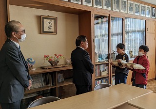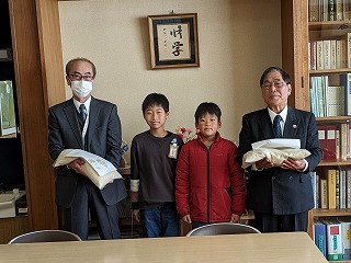 立田南部小学校の学習田で獲れたお米10㎏を愛西市社会福祉協議会に寄付しました。米袋には、後期児童会キャラクターの「たつおくん」と「なんこちゃん」が載っています。立田南部小学校のみんなで育てて収穫したお米です。全校を代表して、5年生の児童2名が愛西市社会福祉協議会の方にお米をお渡ししました。年末を迎えるにあたり、食べるものに困ってみえる方々にこのお米を配付されるそうです。