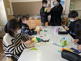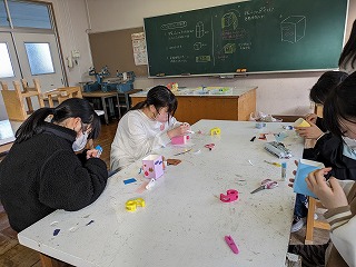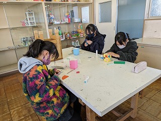 創作クラブは、牛乳パックを使ってペン立てを作りました。