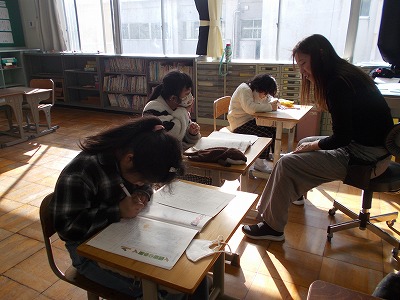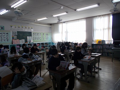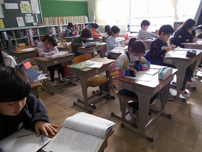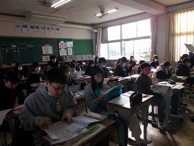 始業の会の後、それぞれの学級では、冬休みの課題の答え合わせをしたり、掃除分担を決めたり、保健だよりを読んで、インフルエンザの予防について考えたりしました。また、早速、学習を進めているクラスもありました。