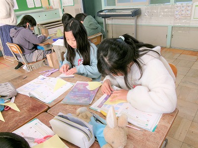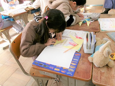 3年生の算数では「三角形」の学習をしています。今日は、色紙を折って、二等辺三角形や正三角形を作りました。