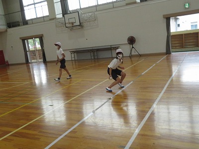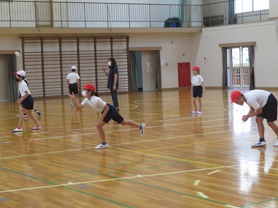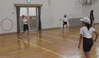 4年生の体育は「ベースボール型ゲーム」として、ラケットベースボールを学習しています。前回は手のひらで、そして、今回は卓球のラケットでボールを打つ練習です。「投げる・打つ・とる」の役割を交代しながら、どのポジションもやればやるほどできるようになって、みんな、嬉しそうにチャレンジしていました。