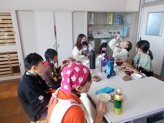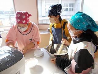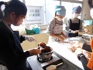11月29日(水) 2~3時限目に、毎年5年生で行っている五平餅づくりが行われました。立田広域委員会のバックアップのもと、JAあいち海部たすけあいの会の方々のご指導、お手伝いで、五平餅づくりをとても楽しく体験することができました。学校ボランティアの方にも、大変な洗い物を中心にご協力いただいたき、とても助かりました。体験後は、おいしいお汁や漬物と一緒に試食。子どもたちも大満足でした。