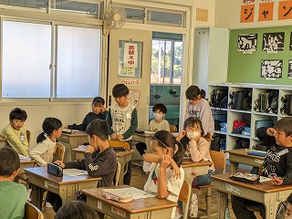友達の「かんた」からの誘いと約束とで迷いながらも、自分で「してはいけないことはしない」と決めることができた「ぽんた」の気持ちを通して、してはいけないことは勇気を出して伝えることの大切さに気付きました。自らよいと思うことを進んで行うには…について、みんなで考え、活発に意見交換ができました。