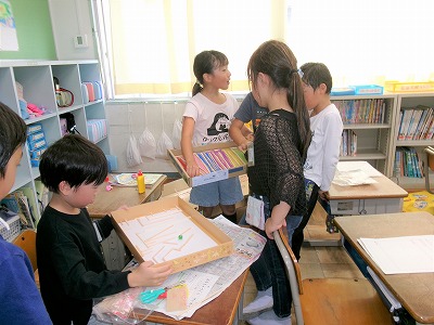 できあがったら、うまく動くように工夫したり、工夫した点を友達に紹介したりします。
