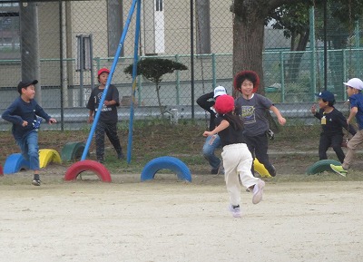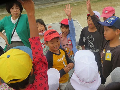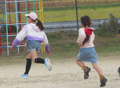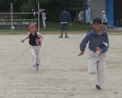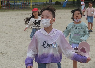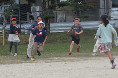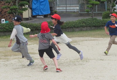 2人の2年生が主催した今日の「おにごっこしたい人、この指とまれ!」には、1~6年生までの男女いろいろな子が集まりました!学年関係なく、みんな全力の鬼ごっこです。広い運動場を隅々まで、ほかの遊びをしている子ときちんと区別して、どんどん捕まえていきます。最後の一人は大勢に追いかけられながらも、すり抜けるように逃げ続けていました。楽しくて「2回戦目をやりた~い」という声が聞こえたころに、掃除への移動を知らせる音楽がかかり、「またね~!」と楽しくバイバイし合ってそれぞれの掃除区域に向かっていきました。みんな、いい汗かいて、すっきりしたように見えました。