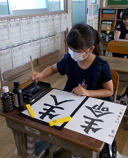 4年生は書写コンクールに向けての練習をしています。昨年より毛筆が始まり、筆使いもうまくなっています。力強い文字が書けていますね。