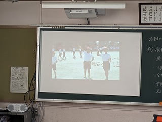 5年松組の様子です。運動会の総練習の様子を6年生のある子が、音楽付きのスライドショーにしてくれました。それを視聴して、運動会の様子を振り返りました。総練習の振り返りより、スライドショーの精度の高さに、みんなびっくりでした。