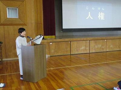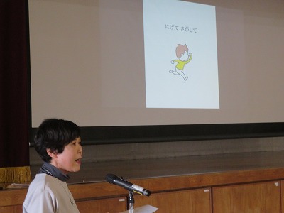 今日の朝礼では、校長先生から「人権」についてのお話を聞きました。子どもたちだけでなく我々教職員も、「にげて さがして」という題名から引き込まれ、大変興味深い内容でした。
