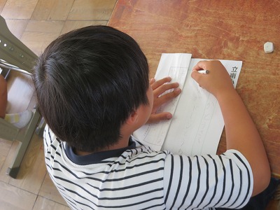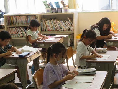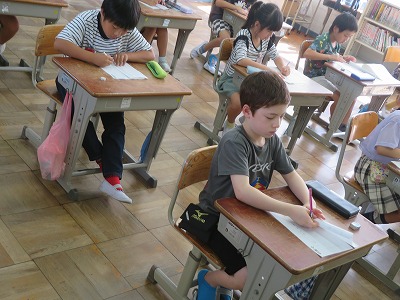 2年生は、書写コンクールの清書に取り組みました。特別な清書用紙を受け取ると、緊張感が高まります。ドキドキしながら、清書を書き始めました。多くの児童が、手本を1行ずつ折って、清書用紙の枠のすぐ横で見られるように工夫をしていました。練習の成果が出せますように!