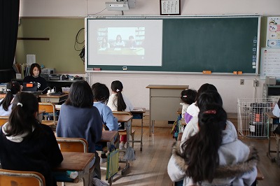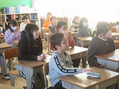 給食の時間に第2回「安全にインターネットやSNSを使うために」というお話がありました。