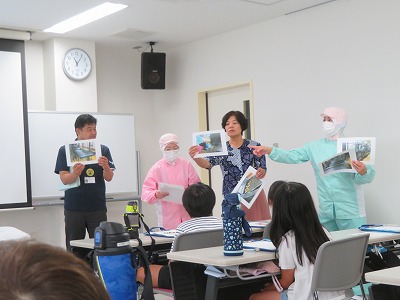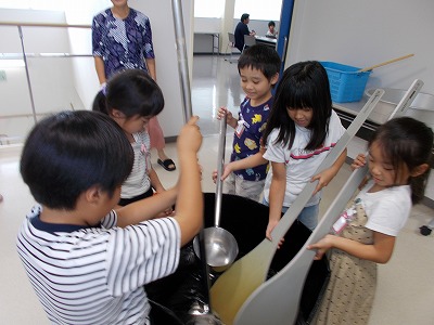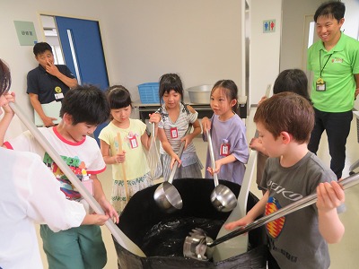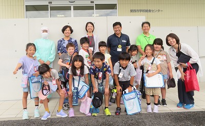 2年生が愛西市給食センターの見学に出かけました。センターの所長さん、栄養教諭の先生、調理員さんなどにたくさんの質問をして、給食ができるまでのヒミツをいっぱい学ぶことができました。「調理員さんは1日に20回も手洗いをしているんですよ」と聞くと、「そんなにきれいにしないといけないの!!」と驚きの声が。夏の熱い中でも長袖の作業着と、髪の毛1本も見えないくらいしっかりかぶった帽子など、安全で衛生的な給食づくりをしてみえる姿を見て、またまた「そこまでするの~!!」と声があがりました。調理員さんの努力や苦労を知って、教室での給食エプロンの身に付け方を見直して、安全な配膳を心がけようと誰もが感じた瞬間でした。毎日、なんと2,800人分の給食を作るための大きな鍋(かま)やとびきり大きな道具も持たせてもらい、調理員さんの大変さを実感しました。ちょうど大きなかまで立南小の分の「関東煮」が完成して、食缶に分けられている場面を見ることができました。たくさんの給食づくりのヒミツを知ることができて、「今日の給食はきっといつもよりおいしいね!」と給食へのワクワク感が高まった見学になりました!給食センターのみなさん、今日はありがとうございました!