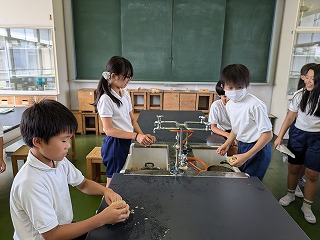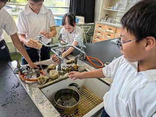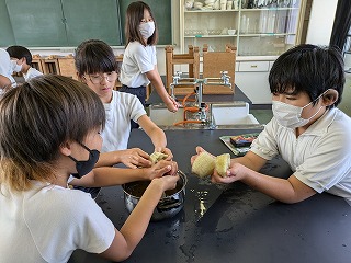 5年松組の理科の授業でヘチマの実を使ってタワシを作りました。