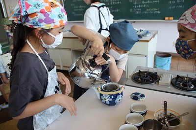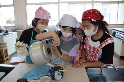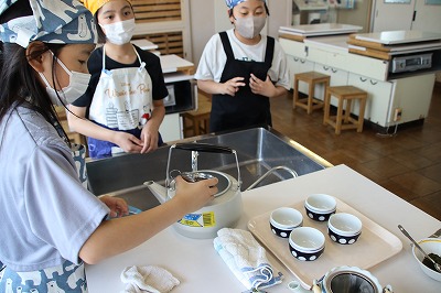 「ガスコンロの正しい使い方を知り、家族のためのお茶を入れる」調理実習を行いました。自分たちでお茶を入れて飲んでみました。