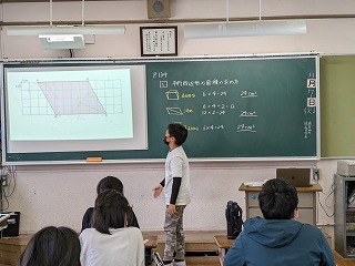な方法を考えました。最後には、平行四辺形の面積を求めるには、どこの長さが分かればよいかを考え、公式を導きました。