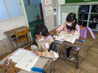 3年松組の様子です。算数でコンパスの使い方を学習しました。コンパスを使って、いろいろな模様をかいています。コンパスを使うことに慣れるように練習しています。