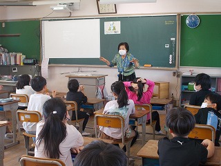 4年生はマータイさんの[MOTTAINAI]のお話から3Rについて、そして「ごちそうさま」の意味についてのお話がありました。